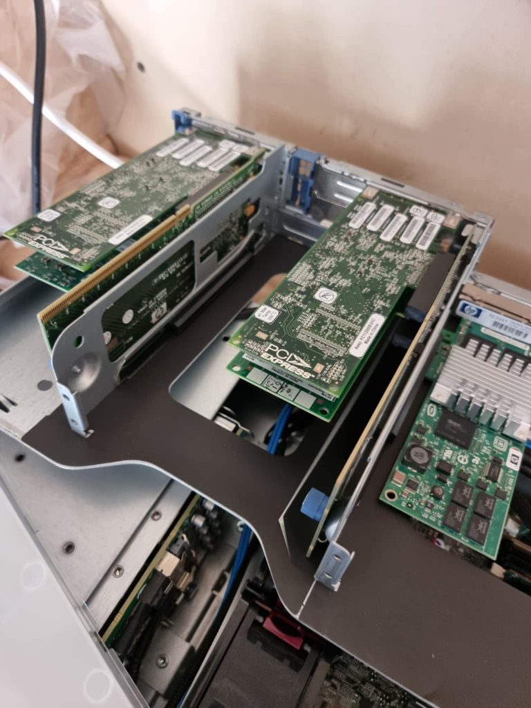 No, ei muuta kuin Proliantissa sitten Proxmoxin asennus käynnistyi, mutta sitten törmäsin siihen että mitään kiintolevyjä tai sellaiseksi miellettäviä ei asennusohjelman mukaan Proliantissa ollut. Tämä johti havaintoon että kai siinä RAID-kontrollerissa nyt tosiaan joku vika on, kun se kerran POST-vaiheessakin sellaisesta kertoo. Ei muuta kuin kansi auki ja tutkimaan, missä yhteydessä havaitsin että sehän on emolevylle integroitu se kontrolleri. Googletin myös ankarasti ja simultaanisesti touhutessani.